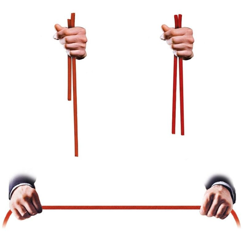 Les deux cordes fusionnent comme par magie pour ne former qu’une seule corde solide ! Un effet visuel saisissant, presque impossible.